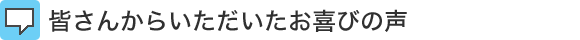 ※これ以外にも、まだまだたくさんの方から喜びや感謝のお便りを頂いておりますが、プライベートな内容を含むものも多く、ここに掲載することが出来ません。